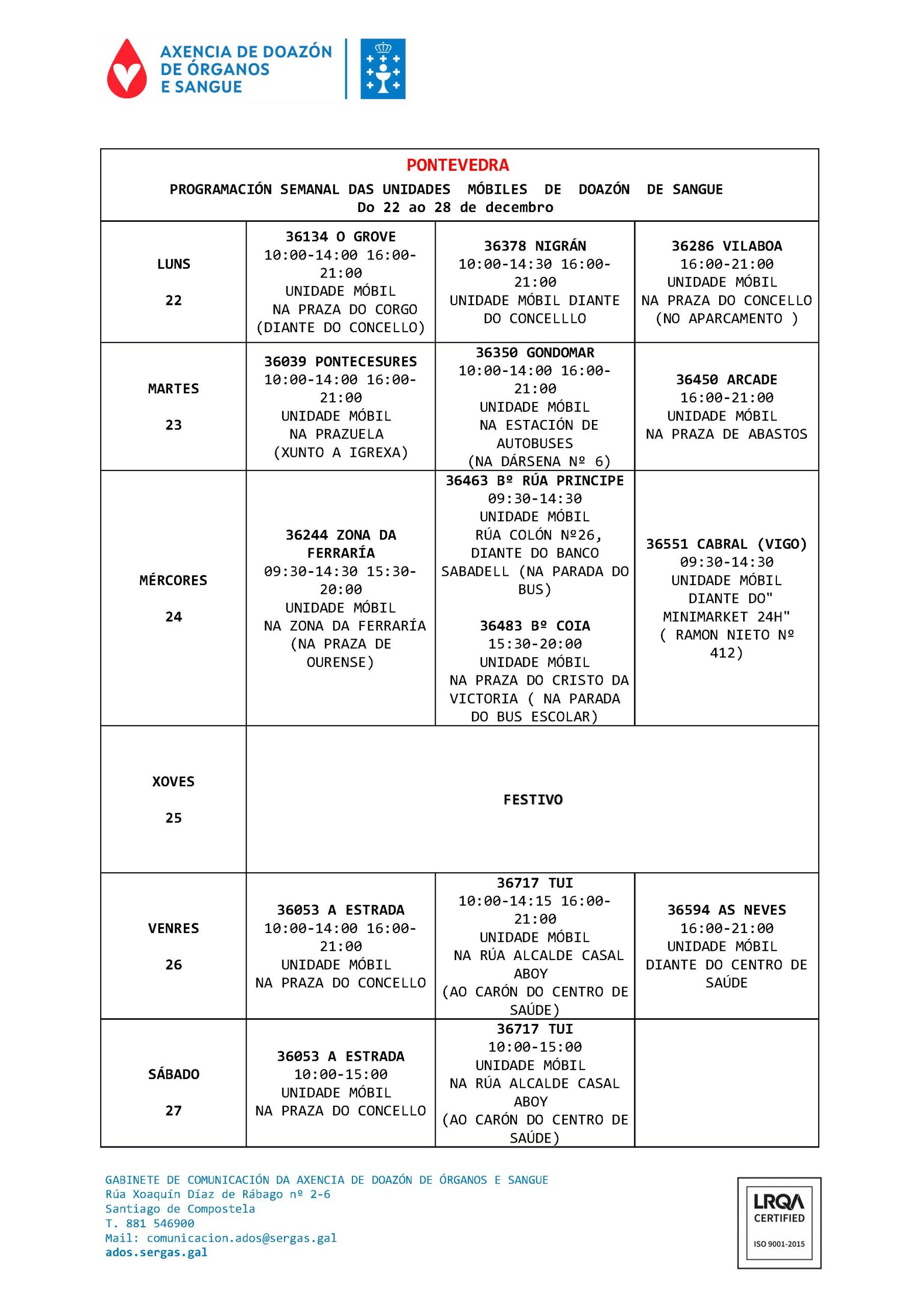 Salidas de las Unidades Móviles del 22 al 26 de Diciembre 2025