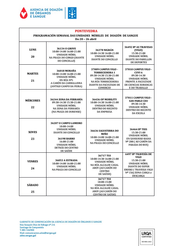 Salidas de las Unidades Móviles del 20 al 26 de Abril 2026